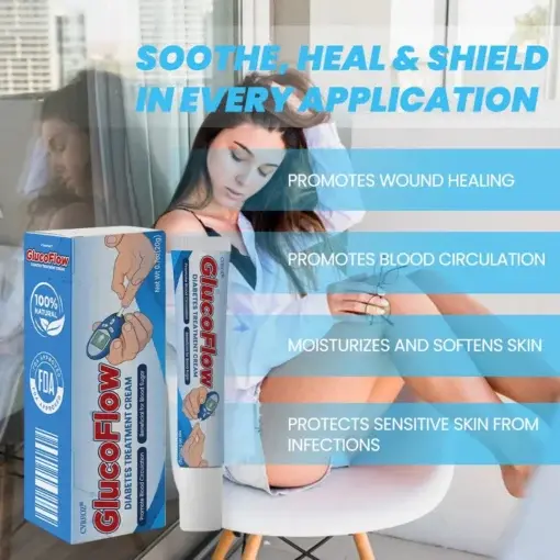CVREOZ® GlucoFlow Diabetes Treatment Cream offers targeted relief and care for diabetic skin, delivering real healing results where it matters most. Backed by impressive user statistics, 97% of users report a reduction in foot sores and ulcers, 95% experience improved blood circulation, and 93% notice healthier skin overall. Made with 100% natural ingredients and FDA-approved standards, CVREOZ® GlucoFlow Diabetes Treatment Cream provides a safe, gentle solution for sensitive, at-risk skin. Its easy-to-apply formula is designed to soothe, protect, and restore diabetic skin – giving users confidence, comfort, and satisfaction, all with a 100% satisfaction guarantee.